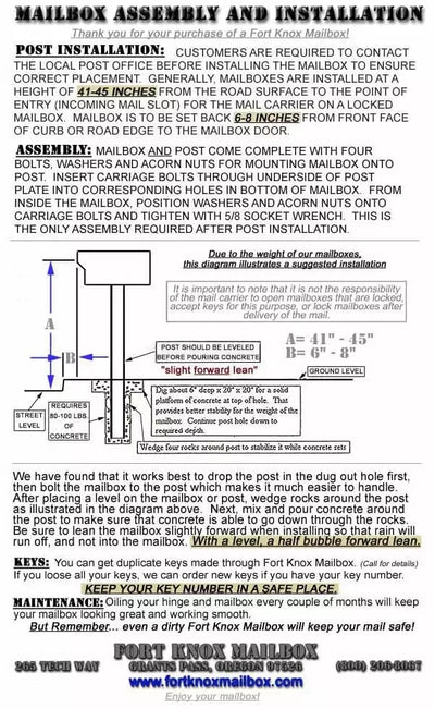 Enjoy your Fort Knox Mailbox! The hard part is over!